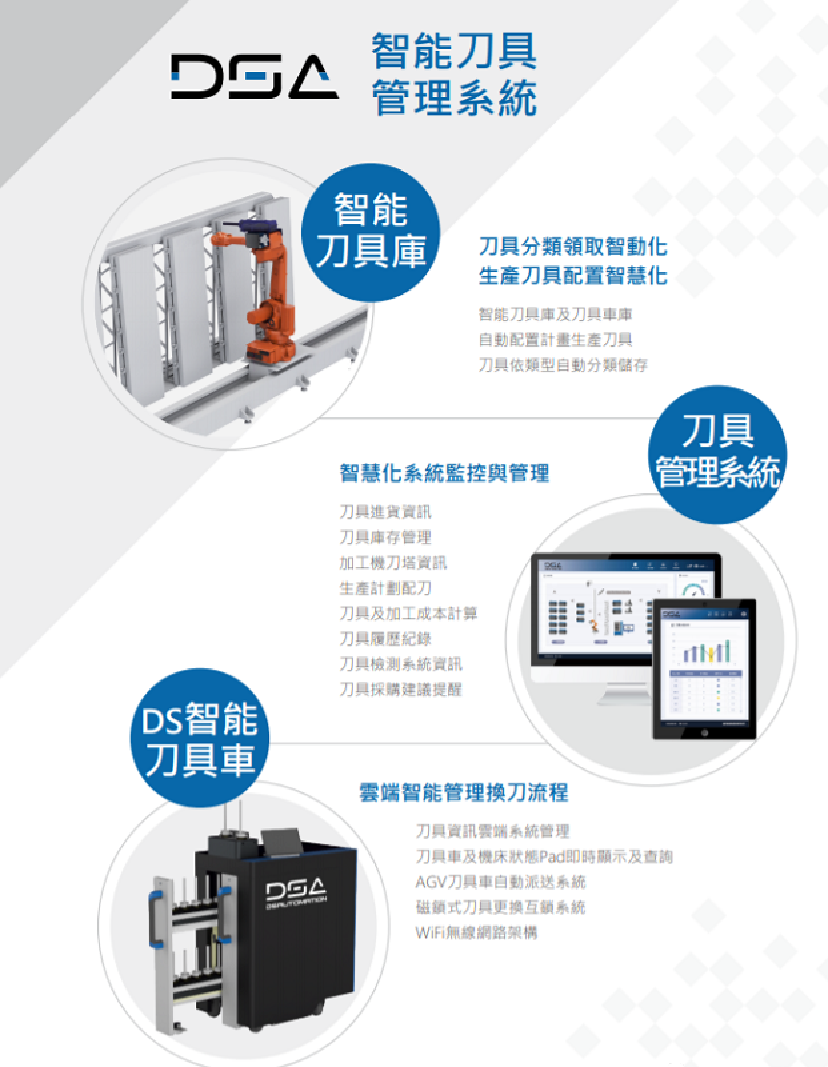 全方位整合设计协助使用者选用正确刀具.并纪录刀具使用历程.进而提高生产效率并有效控管刀具库存及成本为何需要刀具管理,DSA智能刀具管理系统有什么具体效益?➊有效控管刀具库存❷刀具正确配给使用.延长刀...